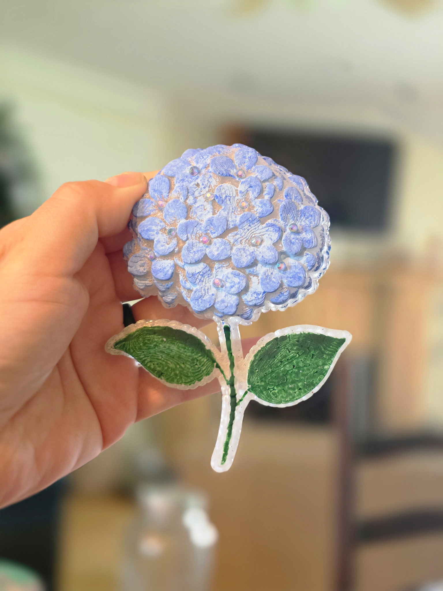 Each freshie is handcrafted, often taking 20 to 30 minutes, depending on the design. She gravitates toward simple, beautiful molds—hydrangeas, soft shapes, things that feel calm instead of overwhelming.