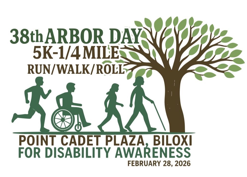 On Saturday, February 28, the 38th Annual Arbor Day 5K and ¼-Mile Disability Run/Walk/Roll will return to Point Cadet Park in Biloxi, welcoming runners, walkers, rollers, families, and friends of all abilities to one of the Coast’s most meaningful outdoor events. Held at 121 Cadet Street, the event draws around 500 participants each year, and the heart of it has always been inclusion.