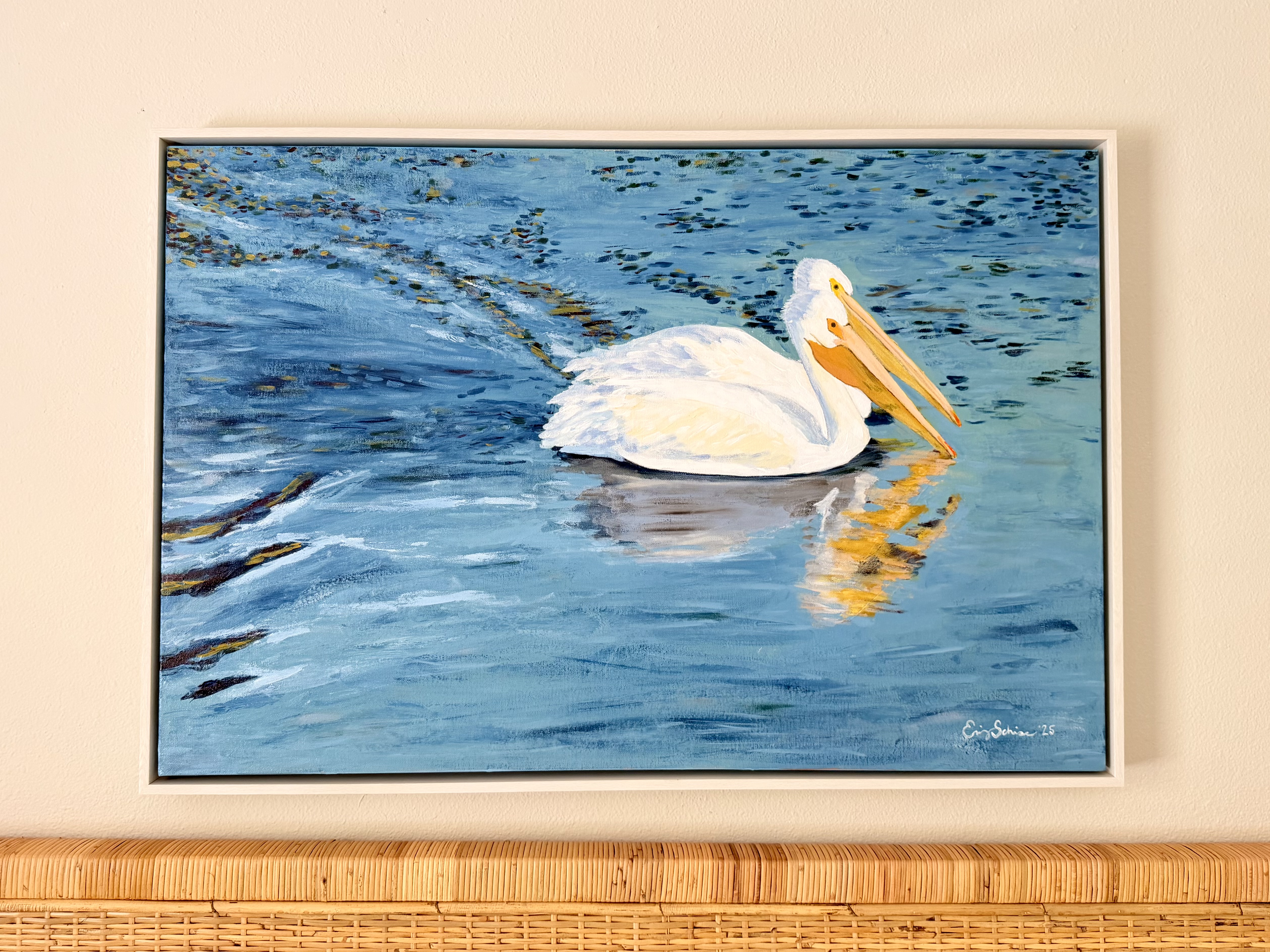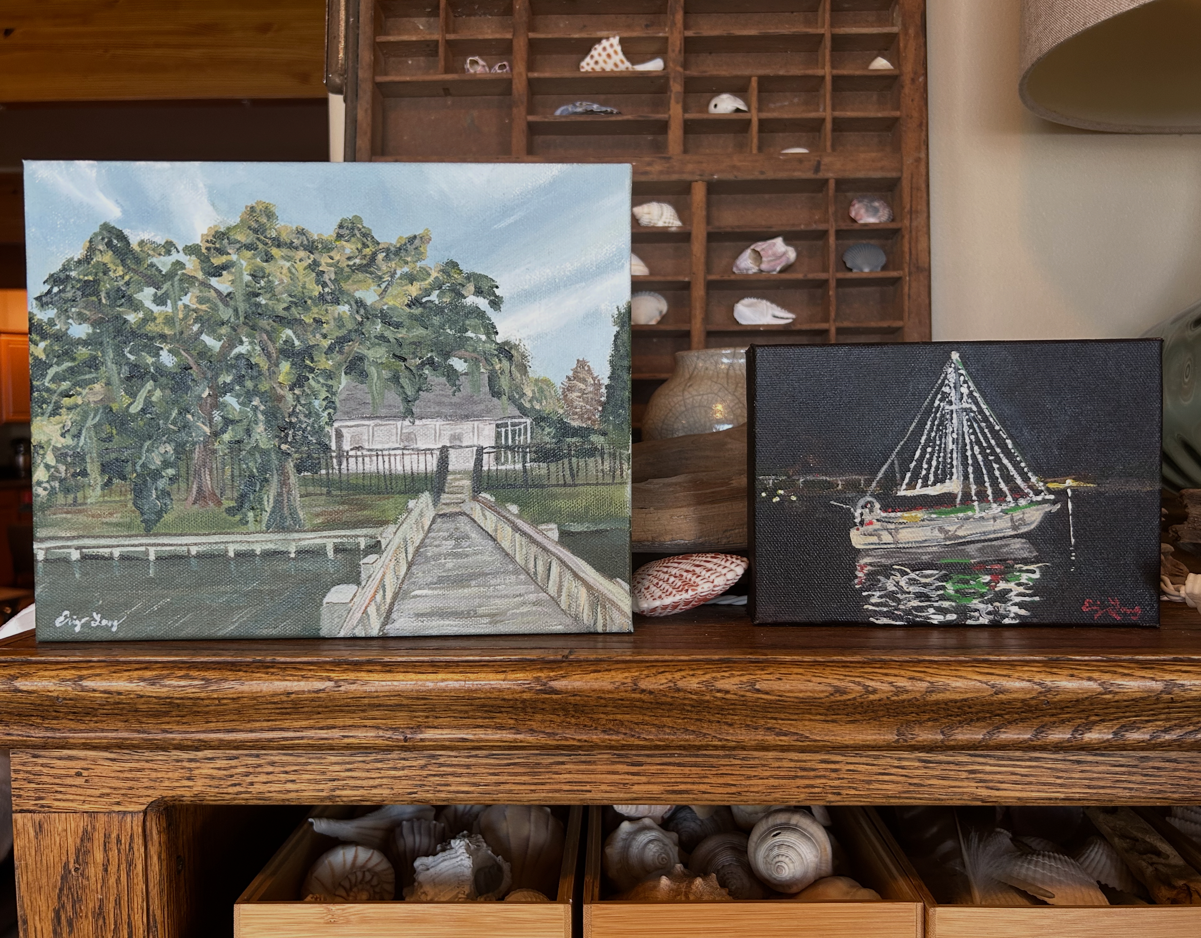 Before moving to the coast, one of her biggest challenges as an artist was simply deciding what to paint. After settling in Mississippi, that changed almost immediately. The Pascagoula River, the Gulf, and even her own backyard now provide more ideas than she can keep up with. Birds, landscapes, and coastal wildlife have become recurring subjects, with a single boat ride on the river offering enough inspiration to carry through multiple pieces.